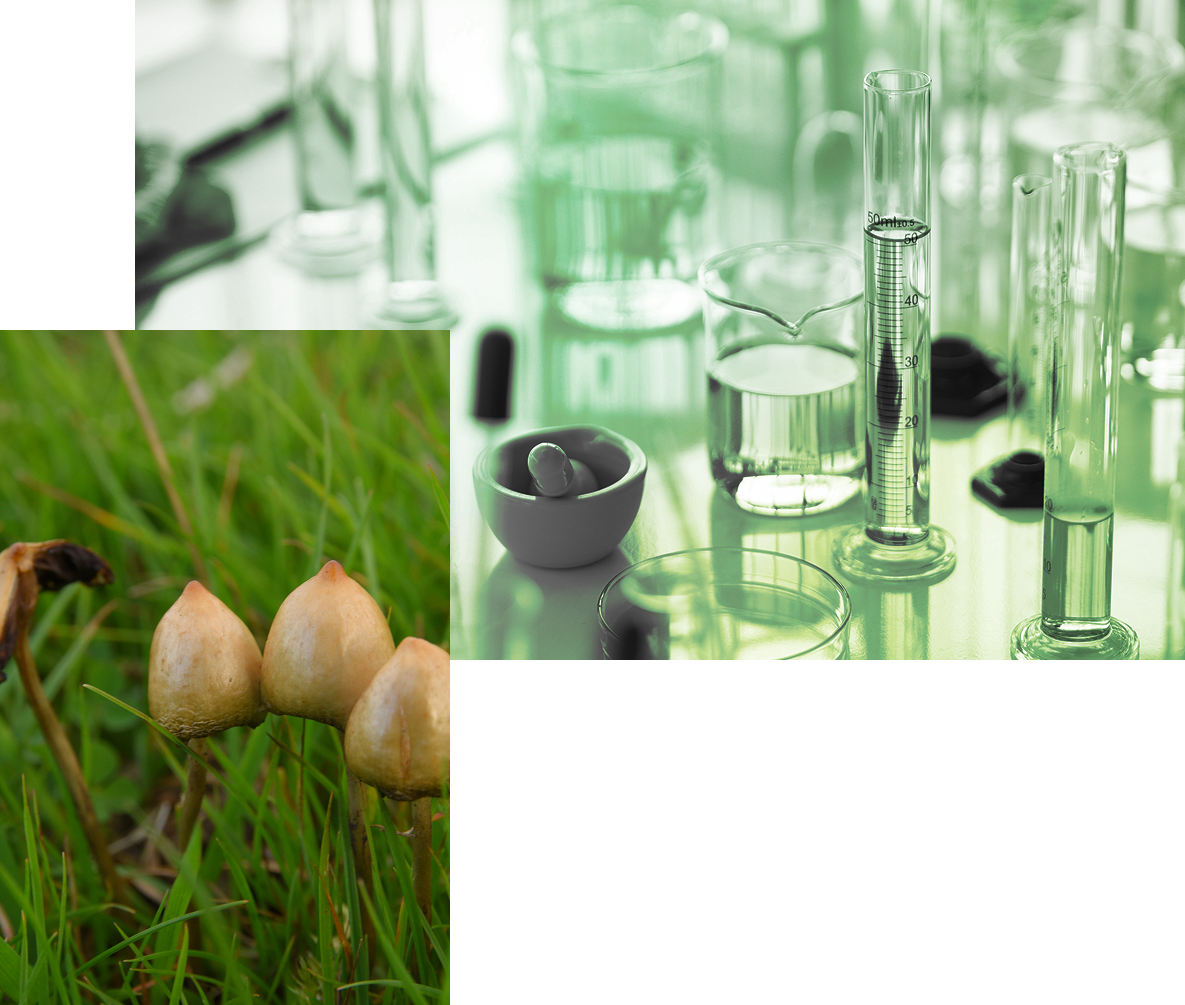 精神展開剤に分類されるうちのひとつに、シロシビンがあります。シロシビンは、Psilocybe属のキノコ(通称:マジックマッシュルーム)に含まれる幻覚作用を有する物質です。実は、このシロシビンを含む精神展開剤の歴史は、マヤ文明の時代から続いています。以前は“幻覚剤”と呼ばれた物質ですが、マヤ・アステカなどの古代文明においては神事や宗教儀式に用いられていました。シロシビンを含む精神展開剤は精神障害の治癒効果を有し、依存性が低いことから、現代に至るまで伝統医療として受け継がれています。